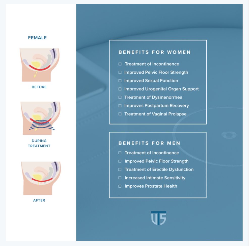 Concerns such as pain, incontinence, vaginal organ prolapse, dysmenorrhea (period pain) postnatal recovery, pubococcygeus muscle strengthening, sexual dysfunction, strengthening of the anal sphincter muscles, prostate health and recovery from surgical procedures to improved bladder function