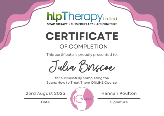 Scar therapy post C-Section, other post surgery or injury scar therapy, used to address issues of pain, swelling or restricted movement.